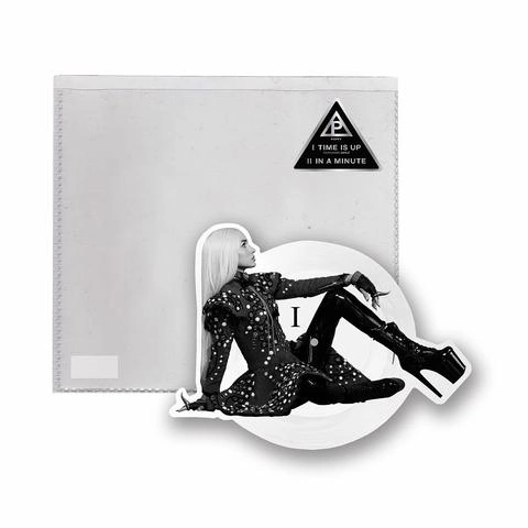 A vinyl release of "Time Is Up" with "In a Minute" as its B-side was available on the Mad Decent merchandise store for $18.00 USD. The vinyl is in greyscale, similar to the album cover of Am I a Girl?. It is a die-cut picture disc, featuring an image of Poppy in a black dress, leggings and high heels taken by Sam McGuire.